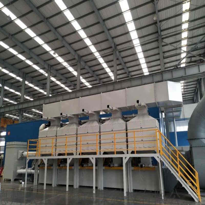 设备特点:1. 适合处理高温、高浓度、连续性产生的有机废气2.不产生二次污染,设备投资及运行费用低;3.催化低温分解,预热时间短,能耗低,催化剂使用寿命长4.设备运行稳定,可靠,活动件少,检修系统配备完善,操作维修方便;5.整个运行过程中实现全自动化PLC控制,方便,可靠;6.系统安全设施完善,配有阻火器,泄爆口,运行时出现的异常情况将报警并自动停机。