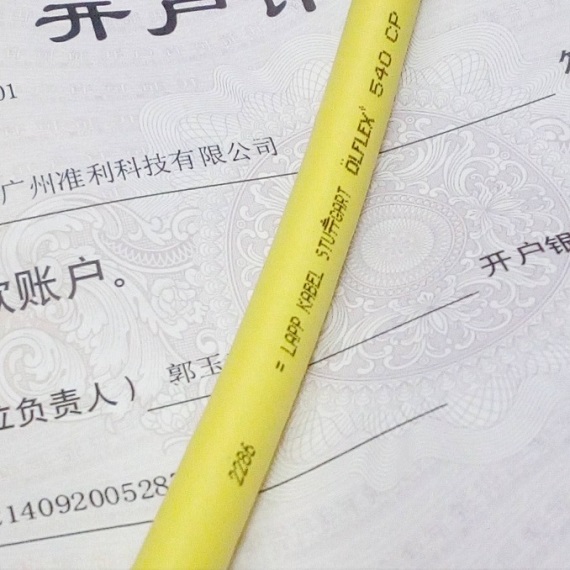 广州准利科技有限公司✆+86 13539761159 ☎+86 2062208903 ✉13539761159@163.com稳定一手货源,工厂渠道供应LAPPGMBH正牌缆普电缆OLFLEX 540 CP电缆,德国工厂正牌U.I. Lapp GmbH Schulze-Delitzsch-Strasse 25 D-70565 Stuttgart EAC ROHS CE 00127643 ÖLFLEX® 540 CP 4G1,5 EAN-Nr:4044774617503 LS-Nr:3006299771 Charge:6310877607 RG01 KdMat:00127643 HS:8544492100101 VDE 0295-5/60228-5镀锡铜丝绕合导体结构,TPE芯线绝缘,TPE内护套,镀锡编织网层包履,EMC兼容,无卤素PUR外皮YELLOW,德国LAPPGROUP U.I.Lapp GmbH Schulze-Delitzsch-Strasse 25·70565 Stuttgart工厂原装进口的OELFLEX_540_CP有◁VDE-Reg.-Nr.6583▷/◁VDE-Reg.-Nr.6584▷的注册号,-40°C低温+90°C高温仍保持柔韧,适用于室内外含应力的恶劣环境下含矿物油成分的润滑剂、冷却液与淡水中的楼宇工程,舞台设备,工程机械,工农业机械与生产设备等;更多应用的电缆请与我们取得联系,以下为ÖLFLEX® 540 CP电缆的常用物料规格::