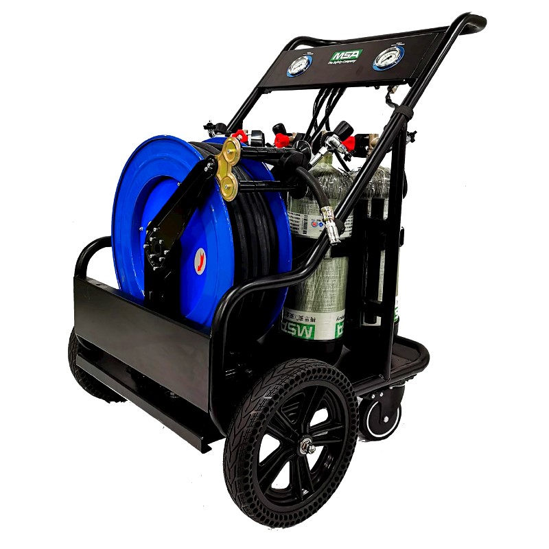 移动式长管呼吸器(小推车呼吸器)属于压车载式移动供气装置,可不依赖于环境气,给作业人员提供呼吸保护。