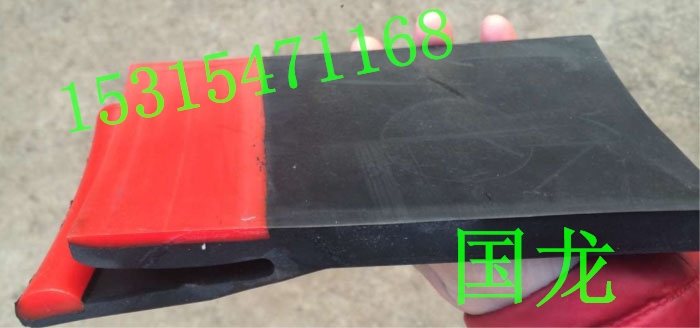 Y型与T型的防溢裙板又被成为双密封防溢裙板,这种裙板有内外两层,底部都热硫化上的聚氨酯块,聚氨酯的加入使得防溢裙板的耐磨性成倍的增长,而橡胶可以将导料槽与皮带及完全密封。在这里也提醒大家防溢裙板的橡胶和聚氨酯一定要热硫化结合,相对的冷粘法会导致长期使用而出现聚氨酯脱落。有一些煤矿单位使用废旧的皮带代替防溢裙板,作为导料槽的密封,这样可以节省一些生产成本,但是废旧皮带不服帖不耐磨、密封性也不好。防溢裙板的长度使用者可以根据自己的情况自由分割,宽度一般在150-350mm之间,厚度16mm,其他规格可按照要求临时定做。防溢裙板的固定通过专用的夹持器固定,买米防溢裙板配备一米角铝和两个夹子。