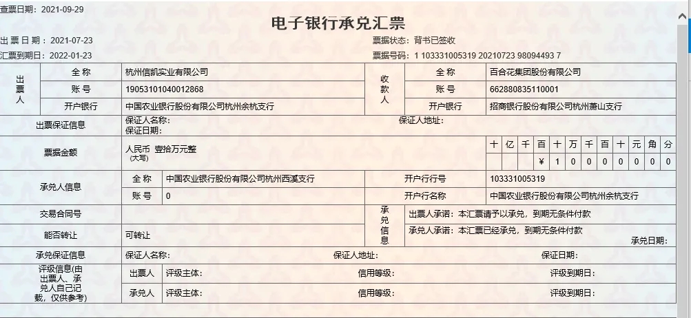 电子承兑汇票:价格电议