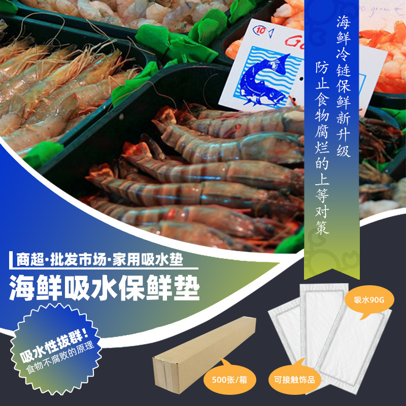 此冷鲜吸水垫用于长途运输、冷链运输、生鲜保存等食材保存用途,使用三层吸水设计(PE膜+双层无纺布+吸水颗粒),达到持久保鲜与长途运输的需求;我厂拥有专业生产设备17台,日产量达到28万张,最高月产量可达最高320万张,小批次大批量都可接单,现货库存当日可发,定制尺寸及文字印刷最快5日出货,量大价优,欢迎询价!