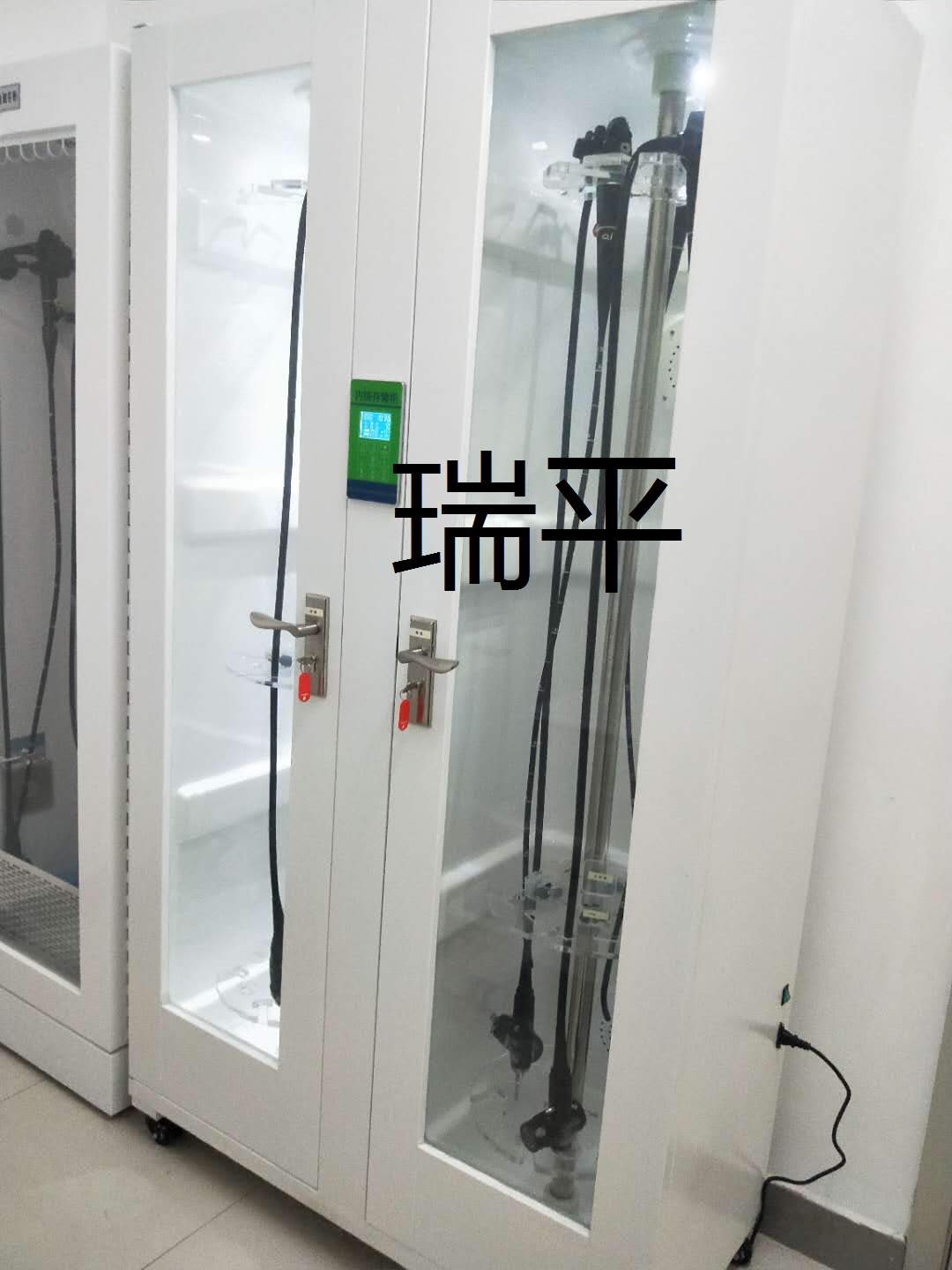 产品特点: 单门软镜储存柜内部设有上中下三层挂镜架,全方位的定位内镜,防止相互碰撞;主要控制方式采用微电脑中文显示控制系统。可储存3-4套内镜。双门软镜储存柜内部设有上中下三层挂镜架,全方位的定位内镜,防止相互碰撞;主要控制方式采用微电脑中文显示控制系统。可储存6-10条内镜。单门硬镜储存柜内设有6层专用托盘用于存放硬镜及其他医用器械,托盘活动可拿下用于承载;主要控制方式采用微电脑中文显示系统控制。显示日期、时间、星期、和消毒累计时间,温度湿度显示,循环风干燥,紫外线、臭氧消毒,活检钳挂钩,开门柜内照明LED灯