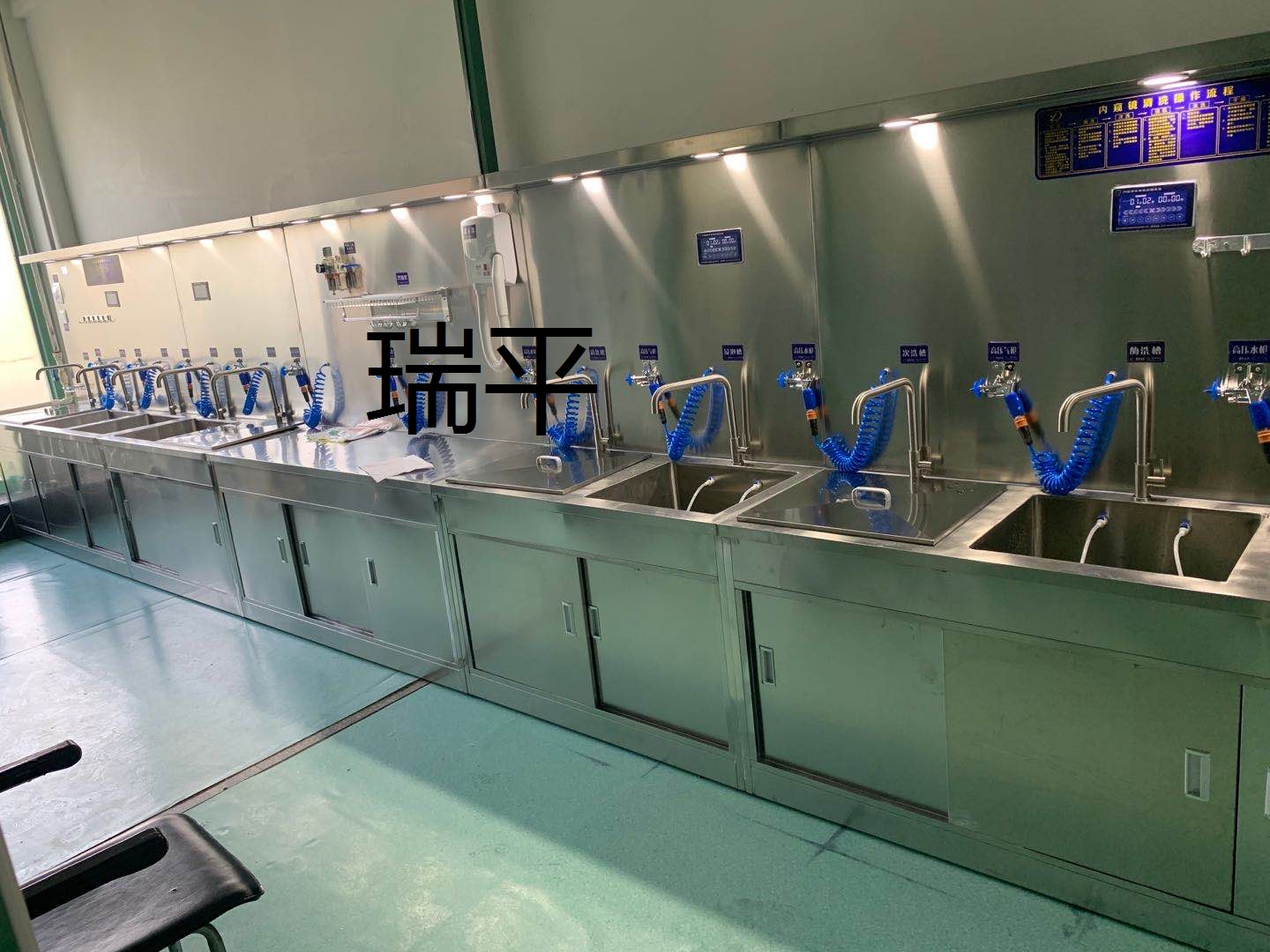 整体造型结构按功能作用形成分体组合,便于设备检修保养,柜体配置静音轴承滚轮,更易搬迁和功能升级,柜体:进口彩晶钢化玻璃材料制成,环保、防潮、耐酸碱,永不变形变色,生锈;柜体内又防腐蚀防潮的专用PVC储物底板,SUS304不锈钢,下柜悬空10cm,不形成台下卫生脏乱,便于清扫,符合院感要求,功能背板采用PMMA高分子复合材料一体吸塑成型,与洗消槽及干燥台的材质和颜色相同,防腐防潮。