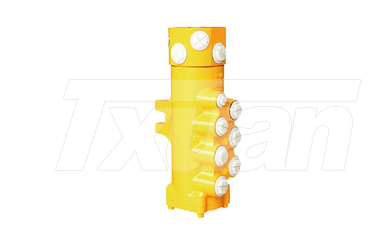 液压中央旋转接头,主要用于挖掘机、起重机、平地机、塔吊等机械的整个液压系统中。连接整个液压系统中固定与旋转部分的液压气动管路,使管路上、下两部分可以360°自由地相对回转运动而不发生干涉。