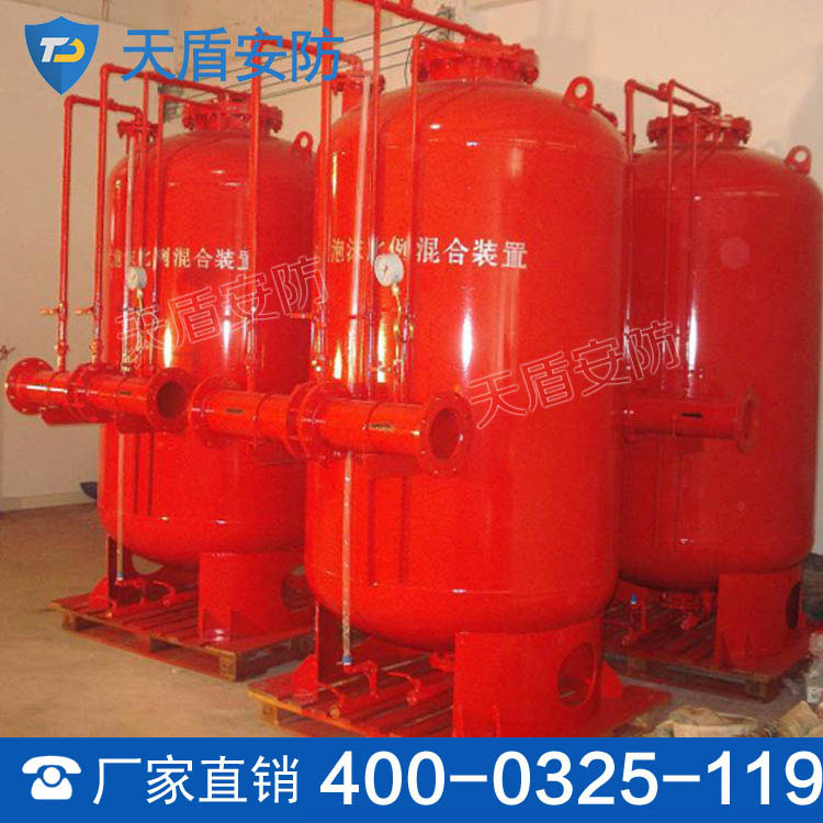 当压力水流经比例混合器时一部分压力水(3%-6%)由支管进入泡沫液储罐 内挤压胶囊,置换出等量的泡沫液与另一部分水(97%-94%)在比例混合器内混合成泡沫混合液提供给泡沫产生装置,产生空气泡沫进行灭火。