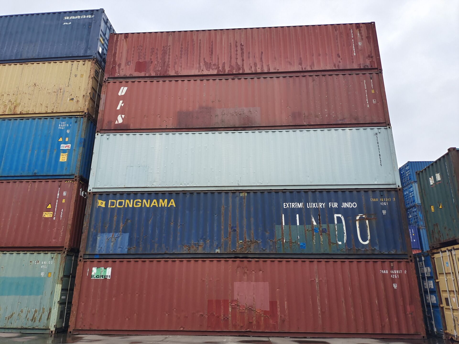 公司是长期经营二手集装箱,所销售二手箱均为船公司或租箱公司退役的集装箱。箱源稳定,箱形齐,状况好,保证不漏水不透光,所有箱子符合IICL集装箱标准制造,满足CW适货标准,质量可靠,一手货源,在天津集装箱堆场有充足货源,堆场直接供货。 1、二手箱成色:六至八成新, 2、二手箱适用范围:出口海运运输,贵重设备运输,工地施工活动房,工厂临时仓库,临时办公用房等; 3、箱型尺寸:20英尺集装箱、40英尺集装箱、40英尺高箱、45英尺高箱 、20英尺开顶箱、40英尺开顶箱、20英尺冷藏箱、40英尺冷藏箱等。