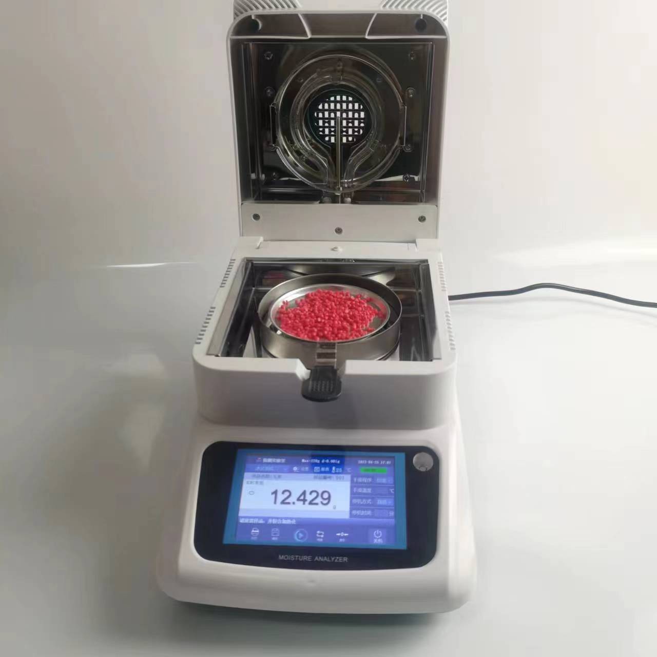 MS105卤素水分仪采用彩色 TFT大屏幕触摸屏,可广泛应用于一众需要快速测定水分的行业,如医药、塑胶、化工、食品(鱼糜、脱水蔬菜、肉类和水产加工、面条、面粉、饼干、月饼等)、粮食、饲料、种子、菜籽、烟草、茶叶以及纺织、农林、造纸、橡胶、纺织等行业中的生产过与实验过程中。