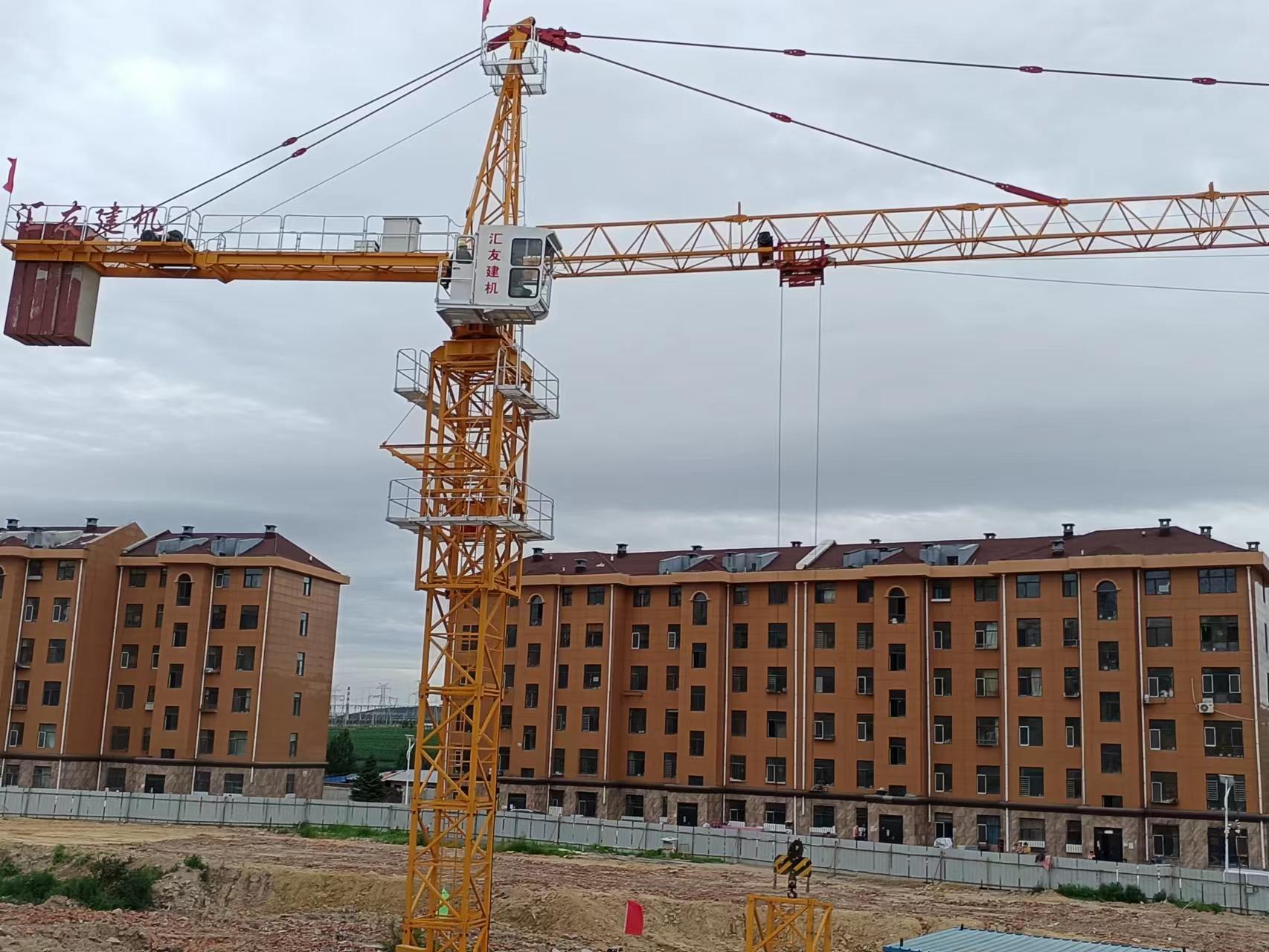 前臂长56米塔机,后臂长(平衡臂长)13.5米;独立高度40米(出厂标准节数量14节),起升高度可以 达到150米。鄄城QTZ80塔吊标准节尺寸为1.6*1.6*2.8;标准节主肢135*12方管/Q355B。该QTZ80塔吊末端吊重为1.2T;菏泽成武县臂长56米QTZ5612塔机整机总功率为34.8KW。成武县QTZ80型臂长56米QTZ5612塔机机臂幅度56米,可以根据施工需要组成为臂长50米,可达幅度50米(去掉一块1.9吨小配重,去掉起重臂第九节)和臂长44米,可达幅度44米(再去掉一块2.2吨配重和起重臂第八节)巨野县QTZ80型塔机工作速度高,调整性能好,工作平稳。起升机构采用三速电机通过换倍率可获得多种速度及每分钟小于5米的慢就位速度,实现了重载低速、轻载高1速、放心可靠。