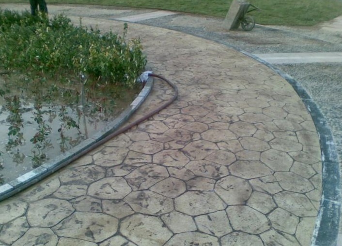 4、用具有凹凸质感的专用模具在地面上压印出各种图案各异、独特新颖的图案;