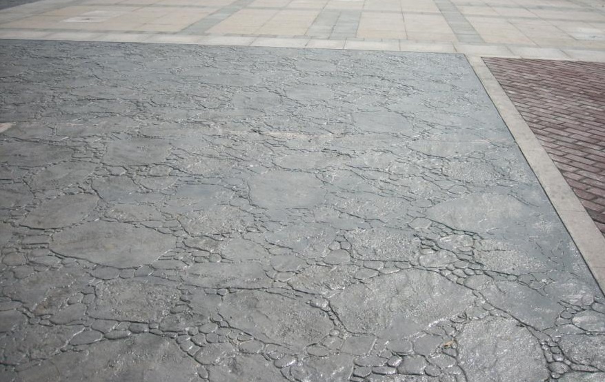 三.现浇彩色压模地坪纹理与基层浑然一体,解决了常规铺装难以克服的表层松动和中空造成的易破裂现象;