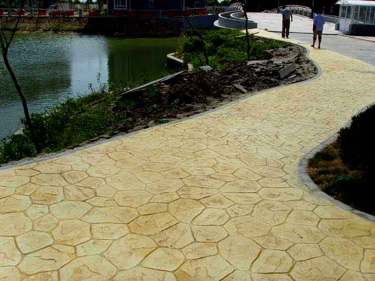 (3)璟彩彩色地坪溶基混凝土密封剂是为满足深层渗透需要而专门设计配置的耐磨聚合体。可以渗透进混凝土,将表面的水份置换出来,以增强混凝土的握持力。彩色地坪保护层具有耐磨性、高防水性、高抗碱性、防蚀性、装饰性、持久性及防紫外线等特性。彩色地坪模具款色有几十种不同的形状,供客户自由选择。客户可根据周围环境选择与之相匹配的色彩,然后选择有个性风格的模具。