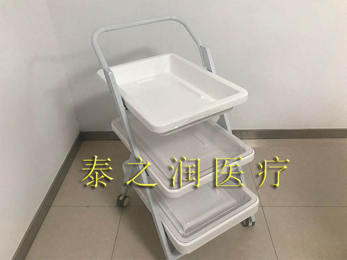 小推车二层、三层独立式设计,周转盘材料由高分子复合材料独立开模制成,车体由钢体喷塑而成,具有耐腐蚀、不沾水、车行顺畅、取放方便等优点。盘内内镜存放导航隔条使污染部分分离。多层设计使客户在使用过程中可将清洁和污染的内镜分层标明后置放,可达到高效周转,避免交叉感染等功效。