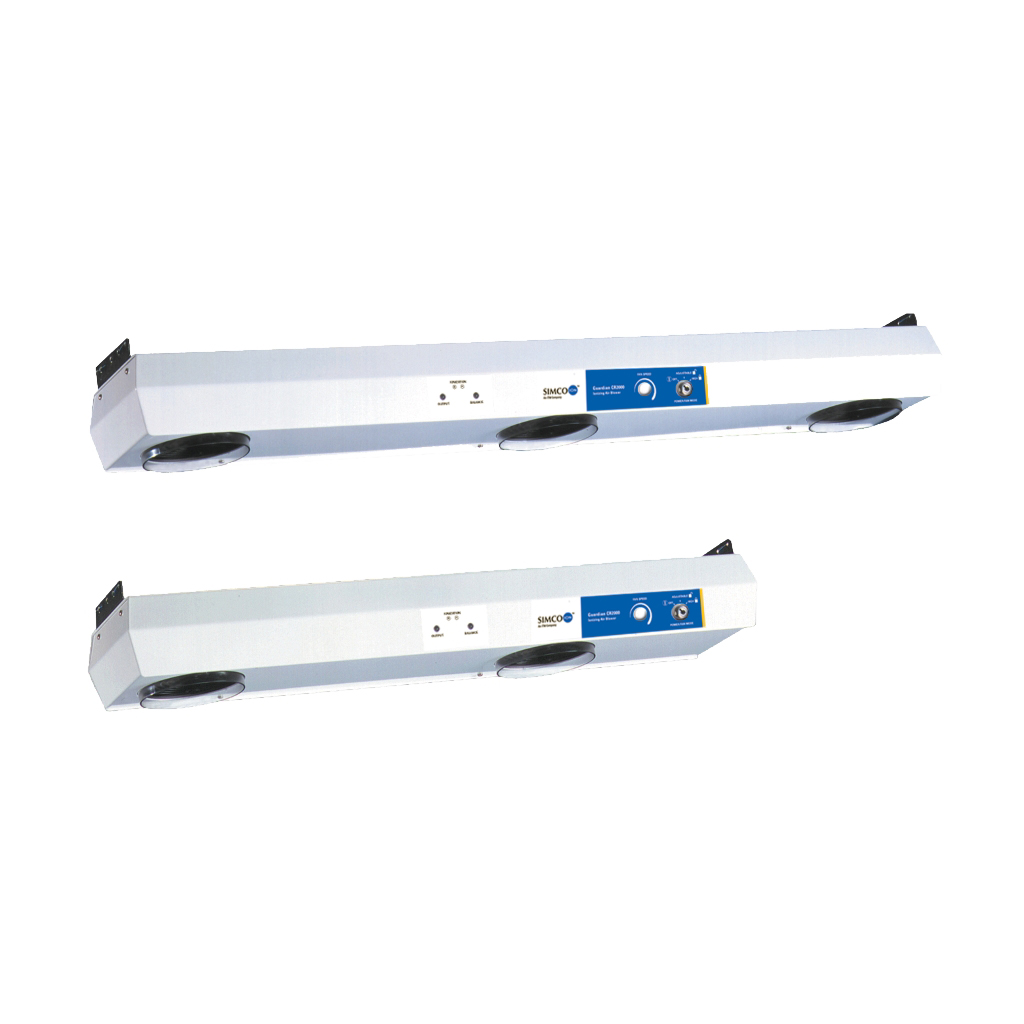 Guardian CR2000 是洁净房级别悬挂离子风机,特别为高洁净度要求的除静电应用而设计。它内置专利电路,在吹风出口加有 Simco-Ion的离子屏蔽部件,减少离子损耗,确保正负离子输出的平衡,达至和维持 0 ±5V 的长期稳定的效能。为确保 Guardian CR2000 兼 容高洁净房的要求,它所用的零件部件都是特殊选取的。所有风扇和转轴都是无硅制造,风扇部件都经过测试,符合 ISO 14644 -1 Class 4 (Fed Std. 209E Class10) 的微粒数量限制。