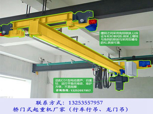 6、采用低净空结构形式的电动单梁起重机,可有效提高起升高度;通过对梁主梁结构的合理设计,选择适合的主梁结构,可极大的降低建设成本。