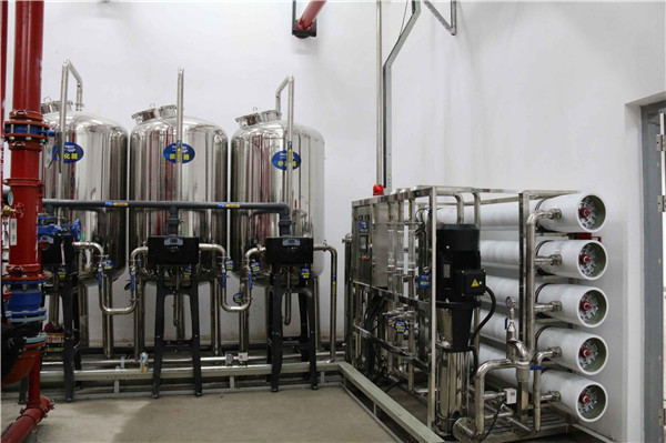 为满足用户需要,达到符合标准的水质,尽可能地减少各级的污染,在工艺设计上,取达国家自来水标准的水为源水,再设有介质过滤器,活性碳过滤器,精密过滤器等预处理系统、RO反渗透主机系统、离子交换混床系统等。