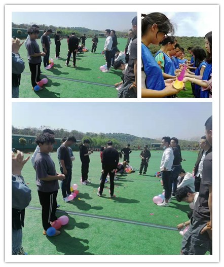 道具器材被小伙伴们高高挂起空中,在相应的位置里悬挂在空中的球不能落下来,指挥员下达命令后一场激烈的比赛将在比赛场道上开展起来,计时开始后来回折返用时少的队伍就算胜利了,通过这个游玩项目可以考验大家的定力与沟通协调能力。