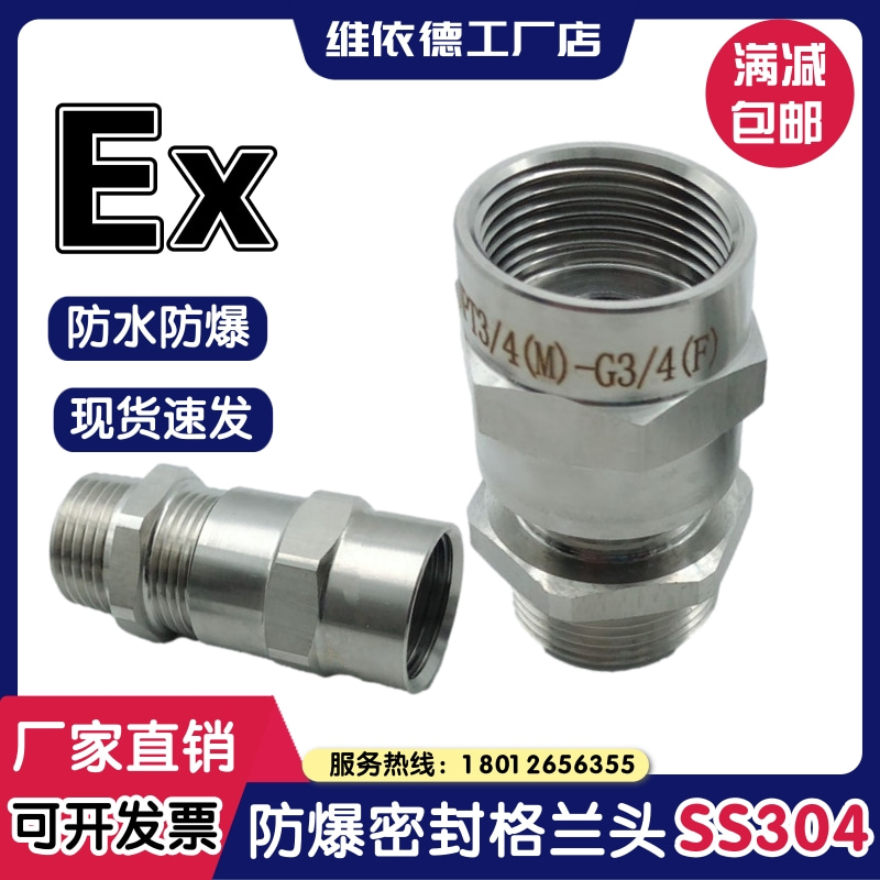 维依德品牌304不锈钢接管式内外螺纹防水防爆电缆格兰头