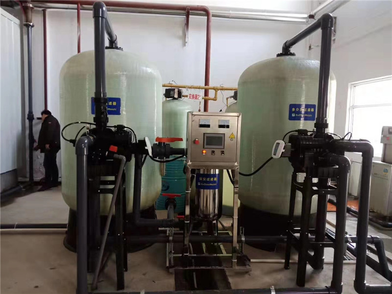 1、 供水:未处理的水通过树脂层,发生交换反应,产生软水。