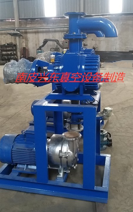 罗茨泵+水环泵:机组中水环泵的作用是造成罗茨泵所需的预备真空,一般情况,单级水环泵极限真空度不高,而目前我国生产的罗茨泵要求的预真空又较高,故实际上不用单级水环泵作为罗茨泵的前级泵,而用能提高极限真空度的双级水环泵作为前级泵使用,采用双级水环泵,还可以提高机组的极限真空度。