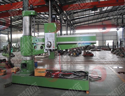 摇臂钻床,也可以称为横臂钻。主轴箱可在摇臂上左右移动,并随摇臂绕立柱回转±180°的钻床。摇臂还可沿外柱上下升降,以适应加工不同高度的工件。较小的工件可安装在工作台上,较大的工件可直接放在机床底座或地面上。摇臂钻床广泛应用于单件和中小批生产中,加工体积和重量较大的工件的孔。摇臂钻床加工范围广,可用来钻削大型工件的各种螺钉孔、螺纹底孔和油孔等。摇臂钻床的主要变型有滑座式和万向式两种。滑座式摇臂钻床是将基型摇臂钻床的底座改成滑座而成,滑座可沿床身导轨移动,以扩大加工范围,适用于锅炉、桥梁、机车车辆和造船,机械行业,等行业。