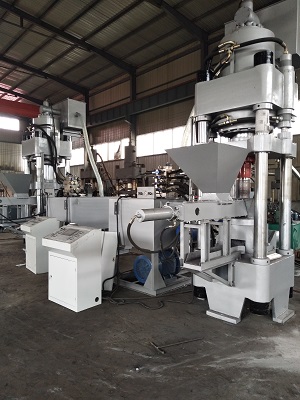 “鑫源”牌金属屑压块机主要是用于将铁屑、铝屑等原料通过高压直接冷压成2~4公斤的圆柱饼块,整个过程不需加温、添加剂,或其他工艺,以便于储运及减少回收再利用过程中的损耗。