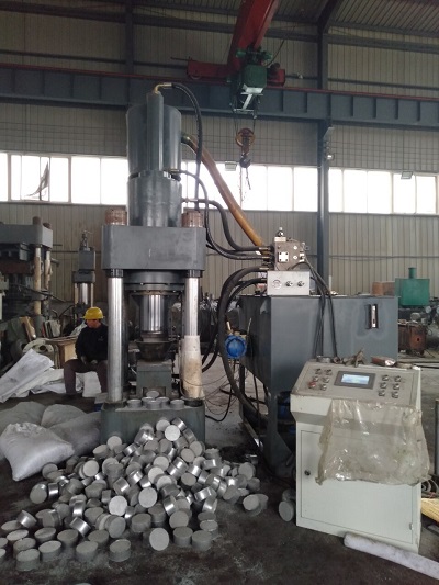 四川全自动铝屑压块机可对铝屑冷压制成高密度重量达2-5公斤左右长方形块,铝屑饼块即可直接投炉使用,也方便了运输,密度可达1.5吨/立方米左右。