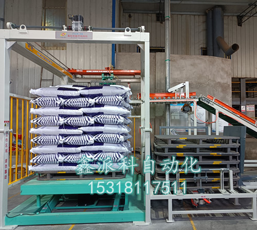 高位码垛机的操作简单,效率高,一台码垛机就能够完成一条流水线的工作。技术人员按照企业的生产需求对码垛机进行编程,后期只需要人工在屏幕上进行操作就可以了。高位码垛机的工作效率在每小时400-500包左右。高位码垛机将料袋输送至设置的高度后,按照预编程好的方式对料袋进行转位、分层、码放,将料袋按照顺序码放到托盘上,然后将码垛好的物料推送出去。