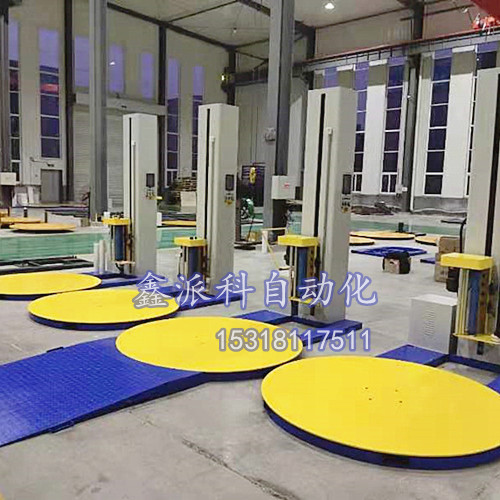 货物通过转盘旋转货物旋转,然后实现货物缠绕包装设备。适用于单个纸箱或不同形状和规格的货物的包装。
