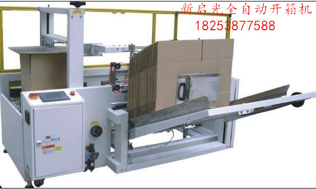新启光自动化开箱机又称作自动化纸箱成型机,运做方式是把纸箱打开,封底并输送至装箱区域,在由装箱机进行装箱。自动化开箱机是适应于大量的纸箱开箱,其效率大幅度的提高。自动化开箱机能够自主的运做吸箱、开箱、成型、折叠、封底等一系列运做流程的,能够便捷操作,是自动化、智能化发展所必不可少的设施。运用自动化开箱机使生产流水线的工作更加的省时省力。自动化开箱机可对不同大小的纸箱调整数据快捷简便,日常维修保养便捷,设施操作简洁明了。电话:18253877588 网址:http://www.xinqiguang.cn/