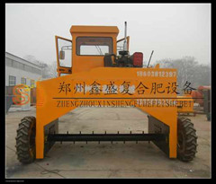 有机肥发酵翻堆车:XSFD-500型生物有机肥发酵翻堆车是生产生物有机肥生产线中的主要设备之一,该机采取四轮行走设计,可前进、倒退、转弯,由一人操控驾驶。行驶中整车骑跨在预先堆置的长条形肥基上,由机架下挂装的旋转刀轴对肥基原料实施翻拌、蓬松、移堆,车过之后篡成新的条形垛堆。即可在开阔场地,也可在车间大棚中实施作业。