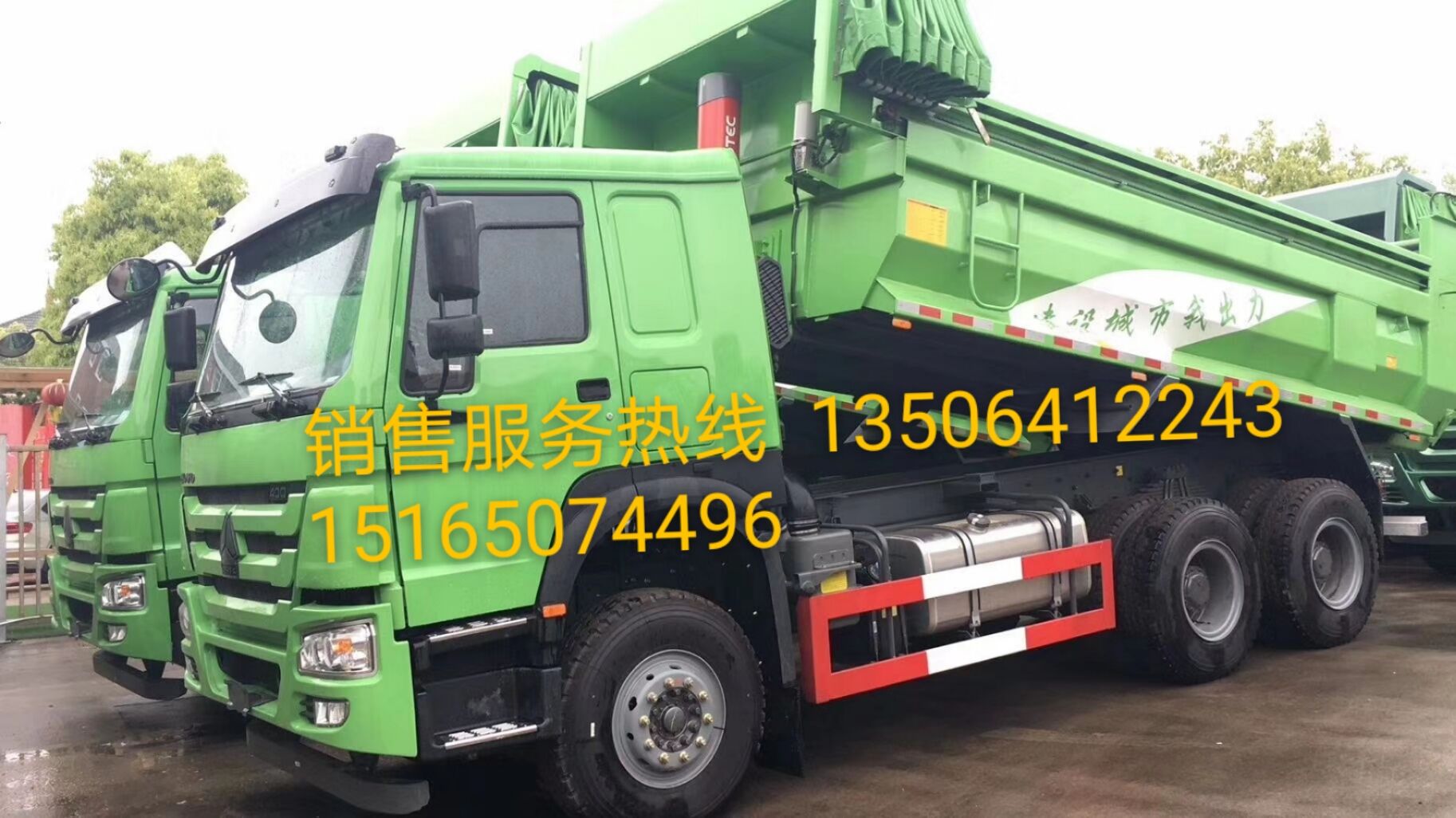 7;自卸车;HW76新前脸驾驶室;440发动机;HW19710变速器+HW50直连式取力器;HR9自调臂前轴(盘);AC16自调臂双后桥(鼓);双层车架(8+8/300);ZF8118方向机;前后加强版多片簧(11/11/12);高位保险杠(金属);带ABS(4S/4M);标准版排气系统;无气候包。12.00R20;速比5.45;无备胎架;选装冷暖空调;选装左后置膨胀水箱;选装400L油箱;选装整车前下防护;山东东岳上装,基本型车厢,前顶海沃191缸,四纵梁,田字格车厢,货箱尺寸:8200mm×2350mm×1500mm,货箱厚度:底10mm边6mm密