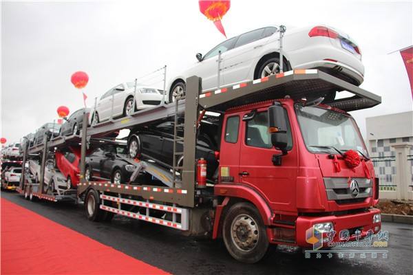 在驾驶室内部布置中控提示操控开关面板,一目了然,便于驾驶员操控;在车辆尾部装有倒车播报器,可提醒后方人员和车辆注意安全。“EBS+ESC系统”比传统的“ABS系统”在安全性能方面有了更大提升。在舒适性方面,该款车标配驾驶室前后气囊减震,并可选装前少片簧+中桥四气囊悬架+后气囊提升桥和ECAS系统。其中,ECAS系统的后桥气囊升降手柄设置在驾驶室内部,方便驾驶员操作,大量采用空气减震方式,大大提高了驾乘的舒适性曼技术发动机 另外,这款轿运车搭载了中国重汽曼技术MC07.34-50发动机,匹配重汽10档变速箱和HW50直连式取力器、153后桥、速比4.111、153前轴、315/60R22.5轮胎,也可采用2×300L双油箱设计。在底盘尾部有挂车链接单元,用于挂车接驳,操作方便
