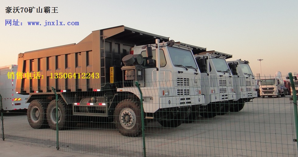 中国重汽积累了大量实践数据和用户用车体验,豪沃70矿山霸王价格是47万元。这款车的技术完全掌握了矿山自卸车的应用特点和专用技术矿山兄弟共同特点: 1.发动机配备了进气系统电加热装置,在寒冷的天气里,车辆启动不在困难,进气系统的预滤+油浴+空滤三级空气滤清器可以有效滤清尘土,有效防止了发动机早期磨损,延长使用寿命。 2.为方便上装改装,排气管预留了自卸车上装底板加热取气位置。 3.加强型的前后板簧使底盘能够应对各种恶劣的作业环境。 4.标配200L冷却水箱和喷水装置,更方便快捷的为制动系统降温,提高了制动安全性。 5.高断面,高强度车价为您的车辆提供了一副坚实的骨架。 豪沃(HOWO)矿山王特点 1.装配HW19710变速箱,带HW50取力器,还可以选装HW70取力器。 2.采用400升D型燃油箱,满足对车辆大工作量的要求。 3.新型前轴采用加强型宽体焊接箱型钢性前轴,更适合矿区恶劣工况使用。 4.后桥采用AC16加强宽体铸钢两级减速驱动桥。 5.车轮与轮胎:10.0/2-20车轮总成,标配14.00-20 -26PR轮胎,选装14.00R20-26PR轮胎,更适用于恶劣工矿。