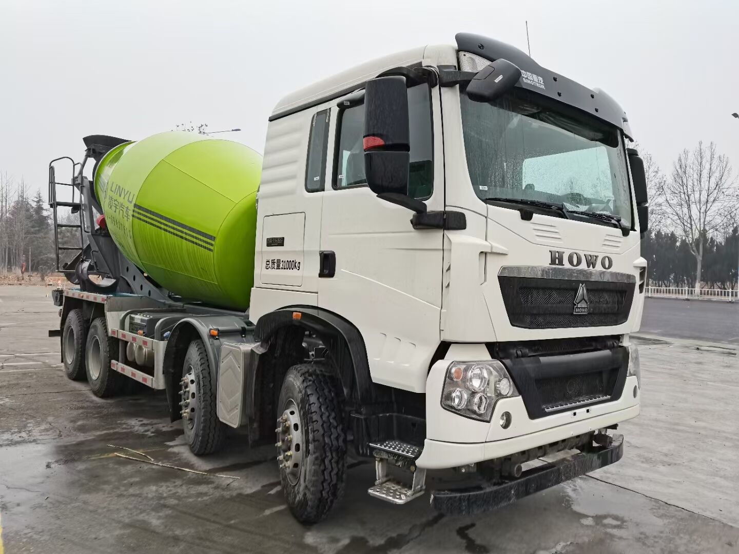 重汽豪沃T5G-M白色排半宽体驾驶室,340马力发动机,(发动机型号:MC07.34-50),HW19712变速箱,11.00R20钢丝胎,ST16吨后桥,带ABS。HW25712XSL变速箱;VPD75D前轴(盘);MAT16ZG自调臂双后桥(鼓);速比4.8;双层车架(8+5/300);前后标准版多片簧(11/11/10);8198方向机;标准版排气系统;ABS(4S/4M);中位保险杠(非金属);11.00R20(混合花纹);300L油箱;拉索式PTO;洛阳中集凌宇汽车有限公司/唐山亚特专用汽车有限公司:泵+马达:丹弗斯;侧防护:铁;挡泥板:橡塑;副车架结构:矩形管120×80×8;后防护:铁;减速机:法士特;搅动容积:7.6;散热器:振华;上装自重:4.2吨;水箱:铁(400L);