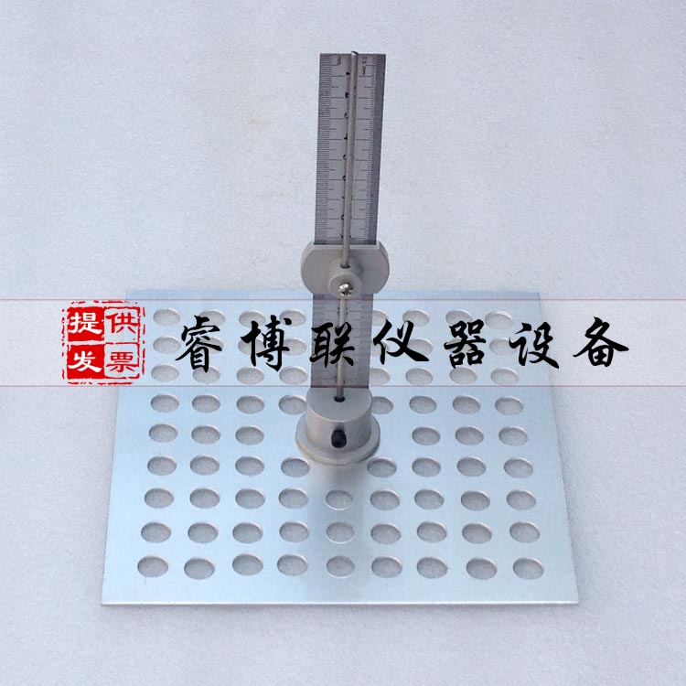 将被测试样平整放在硬质平板上,松开测针底部的拧紧螺母,将仪器轻放在被测试样上,慢慢将测针插入被测试样中,直至底部,看刻度尺指针滑块平行处所指厚度,即为被测试样厚度。