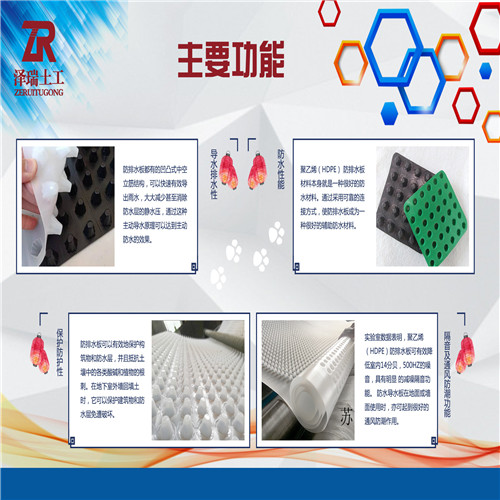 排水板在现代防水建筑中的作用,及其广泛,排水板的应用范围和技术含量要求,均达到标准,泽瑞排水板厂家生产的排水板在中国以及欧美销售应用,得到了中外建筑方面专家的赞赏和一直好评。