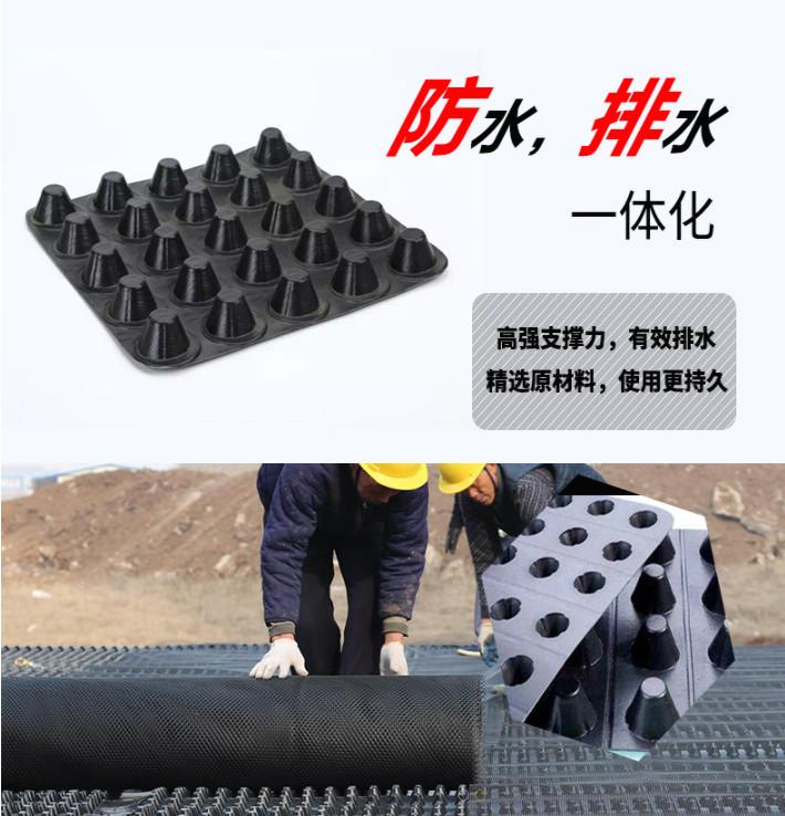 3公分圆锥形滤水板加土工布的出现已经成为了一种趋势,如今已到了防水板生产旺季,也是应用于防水板巩固的时节,由于天气的变化,对于防水板的施工有着一定的利于作用.3公分圆锥形滤水板,是用采用高密度聚乙烯(HDPE)经加热加压注塑而成。是集排水、蓄水功能于一体的新型排水材料。它同时具备了蓄水、排水、透气、保温隔热、阻根刺(防止植物根系破坏混凝土结构)等多种功能。结合土工布一起使用,可以避免细颗粒基质堵塞蓄水槽和排水通道,保持排水通畅和空气流通,形成一个完整的、新型蓄、排水系统,被广泛地应用于城市园林绿化工程中。