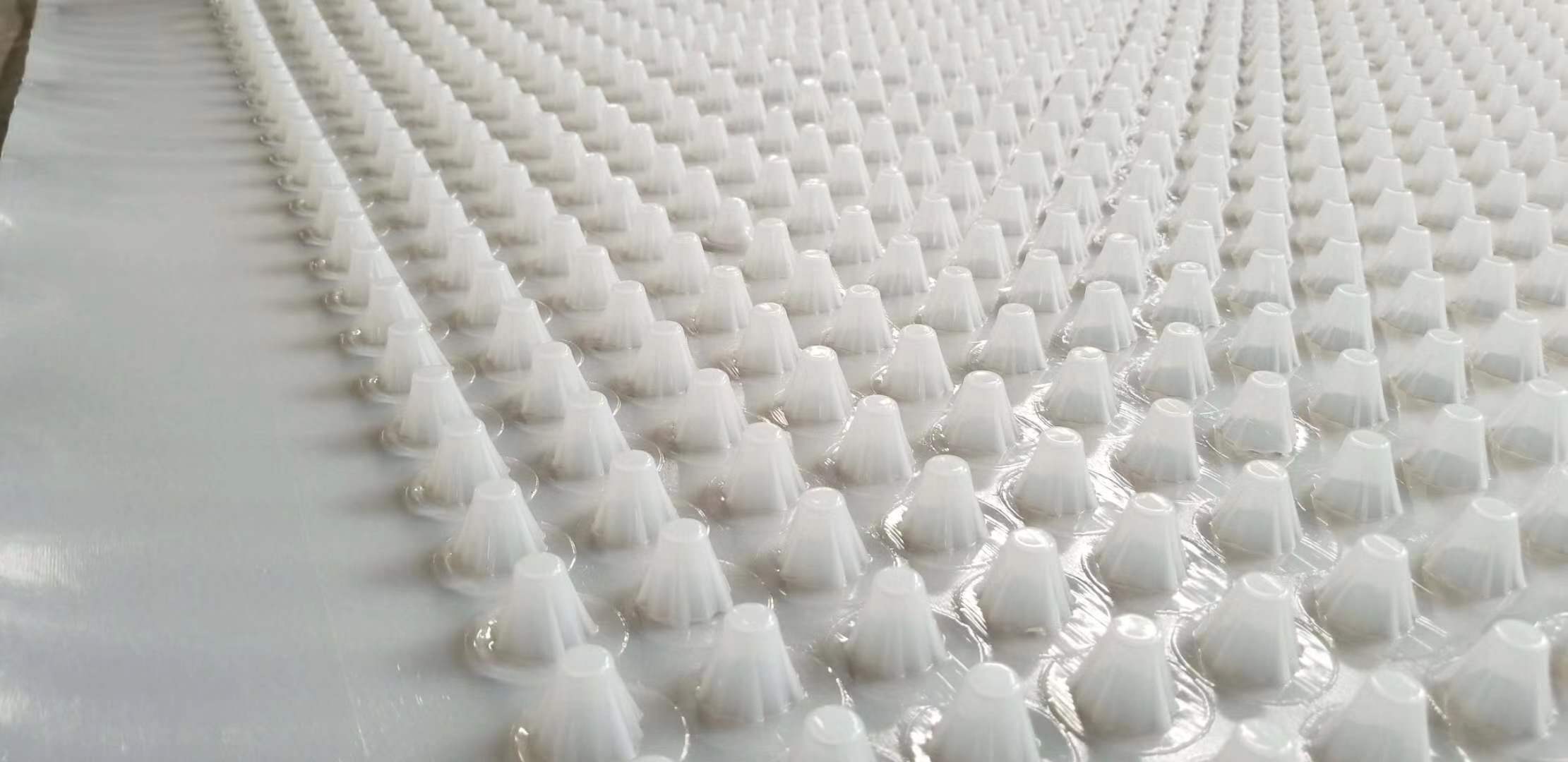 全面防护,进而达到全面保护系统安全的目标,此排水板通过特殊的凹凸式中空立筋结构,采用比较简单且可靠的连接方式,从而达到全面保护、防水及导水的功能。