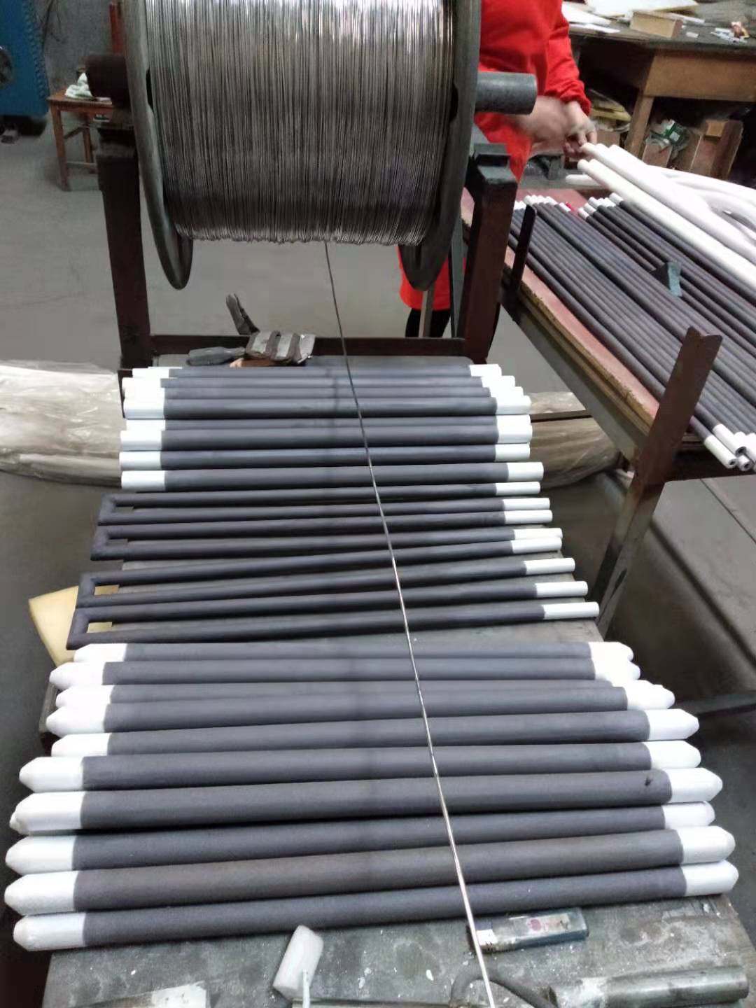 U型硅碳棒是硅碳棒众多规格里面的一种,国内的硅碳棒企业采用的都是大同小异的配方与制作工艺,使用温度一直不能突破1520度。该元件与传统电热丝等金属元件相比,具有使用温度高,抗氧化,耐腐蚀,寿命长,变形小,型号多,易安装,维修简单等特点,被广泛应用于磁性材料,粉末冶金,陶瓷,玻璃,冶金,模具等多种高温制造领域。由于环保要求,目前硅碳棒采用全新的热冷端部生产工艺,具有优良的热冷端电阻比,避免了以前工艺生产的硅碳棒因为冷端有电阻温度过高对炉体造成的损害。U型硅碳棒是由三支冷端与两支热端焊接而成,有四个焊接口,U型横的部份因为是冷端所以不会发热。U型棒的中心距在25-150之间,大于这个间距的也可以称作门型硅碳棒,不过它们的发热方式不一样,U型棒是竖的部分发热,门型棒是横的部分发热。