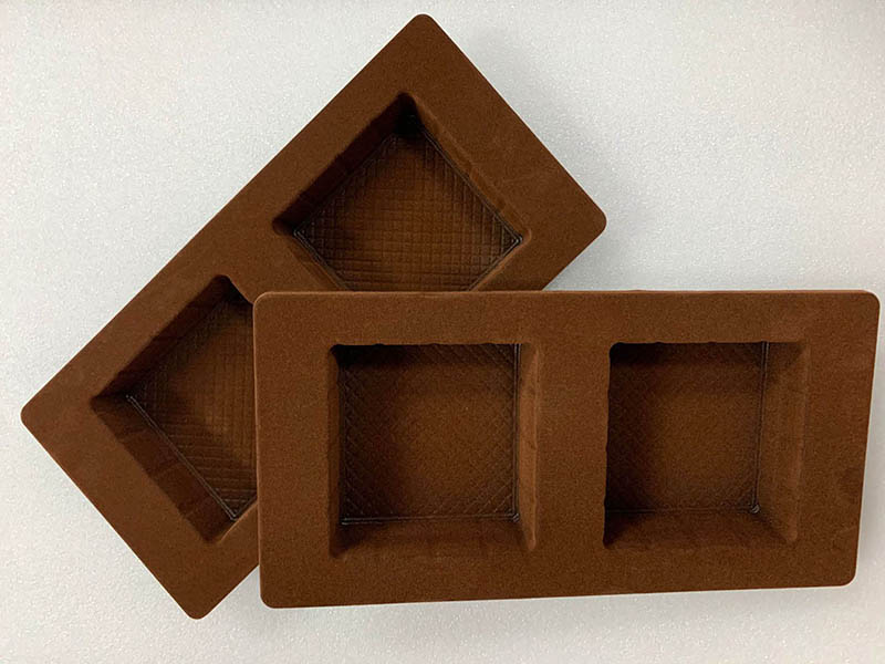 酒盒植绒吸塑比普通吸塑多了一层绒质材料,这层绒质材料通过特殊工艺粘在普通的塑料硬片上,从而使托盘表面有种绒质的手感,用来提高包装品档次。植绒托盘更好的保护产品防止刮花,酒盒植绒托盘既有韧性与强度,又有绒布本身的柔软度。植绒吸塑内衬就起到保护产品的一个作用,在运输的过程中不容易损坏。