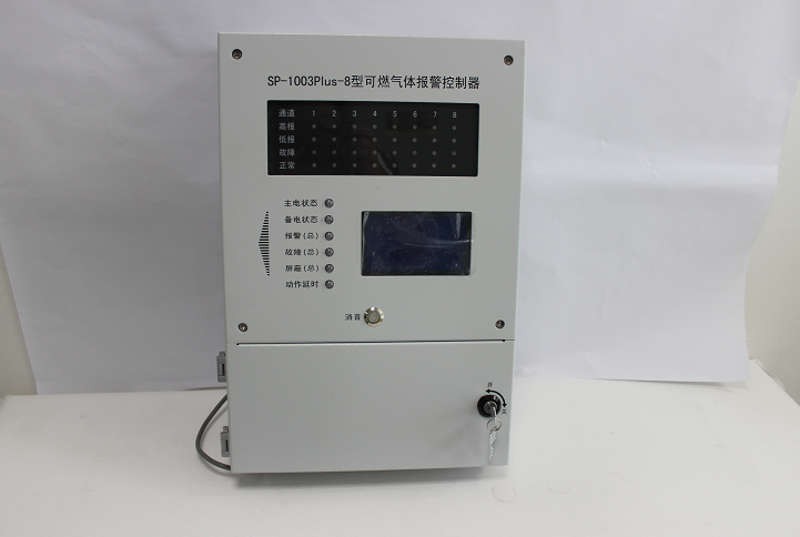 SP-1003-4型气体检测报警控制器(以下简称控制器),外形采用壁挂式结构,具有安装简单、操作方便的特点。可适用于各种标准 4~20mA 信号的测量与控制。电子线路采用单片机处理技术,使整机工作状态稳定、测量精度高、通用性强。该控制器配有四个输入通道,八路开关量输出。控制器以巡检方式工作。该控制器可设定两级报警值,到达预定的报警点后发出相应不同的声光报警信号。