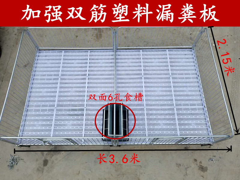 保育床仔猪保育栏性能及优点:仔猪断奶后养殖所需要的栏具.四周围栏,底部铺有塑料漏粪板,在底部有全球墨铸铁杠框架支撑.配有双面6孔育仔料槽,床底与床架以螺栓连接拼装,每栏片之用插销连接.方面组装。温效果好,地板为塑料材质,质地柔和,不伤小猪猪蹄.全床安装无须焊合,省时方便.大小尺寸设计合理,满足整窝猪转群需要。