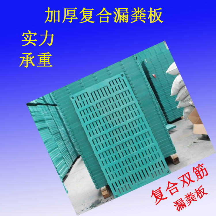 BMC复合材料漏粪板(养猪场的猪舍用新型地板)已陆续在广东,福建,江西,安徽,广西,河南,湖北,江苏,山东,河北,湖南,陕西,四川,贵州,云南,山西,内蒙古,吉林,辽宁,黑龙江,宁夏,青海,重庆,浙江,甘肃等省市的大型现代化养猪场应用,这种地板主要采用不饱和树脂,低收缩剂等各种纤维材料配合螺纹钢筋骨架压制而成的新型漏粪板。具有高强度,不伤奶头,不伤猪蹄,不吸水,耐酸腐蚀,不老化,不沾粪,易清洗,无需横梁,重量轻运输方便等特点。有扣板式和平板式两类,能满足各种母猪产床漏粪板,母猪分娩栏漏粪板,公猪舍板漏粪板,育肥猪专用版,仔猪保育栏漏粪板,限位栏漏粪板等的需求,是未来养猪设备中的首选漏粪板