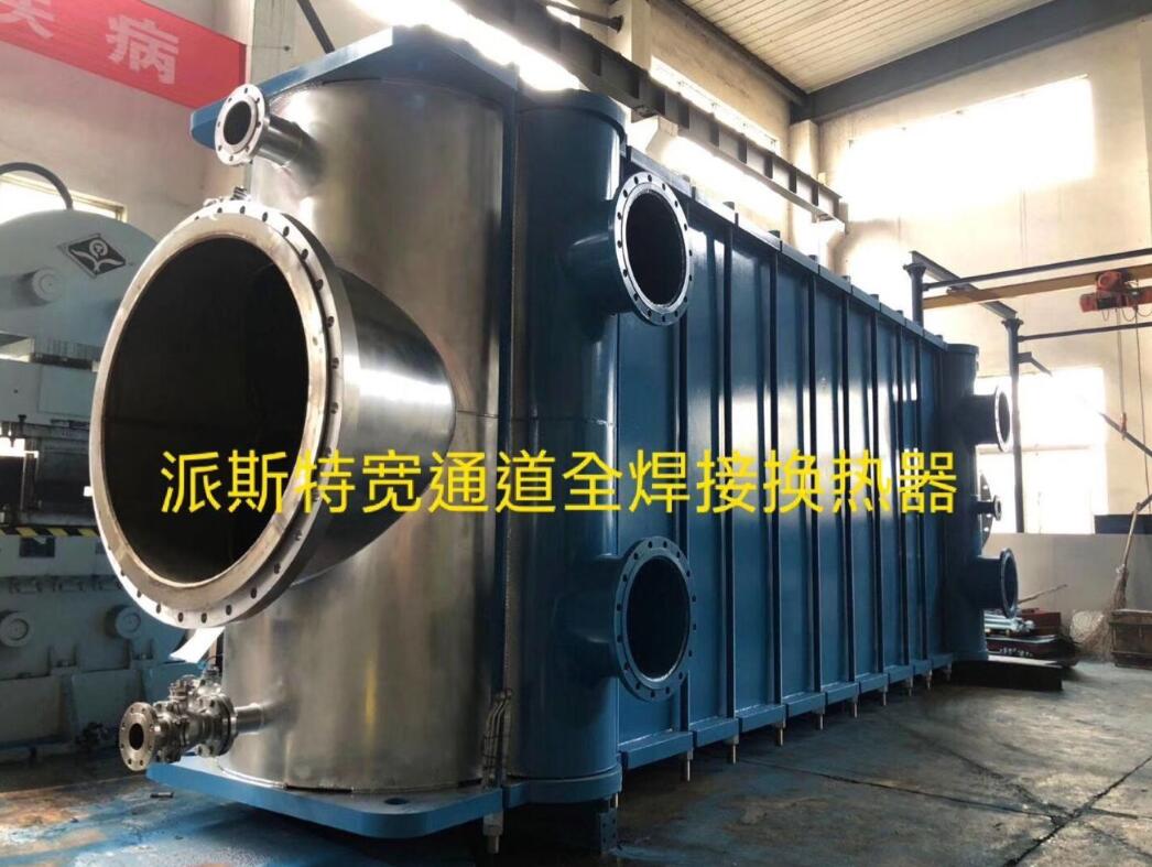 派斯特宽通道全焊式板式换热器,采用凸点板片形式,板片之间形成介质流道,周边通过焊接密封,一侧流道为窝状波纹板形成触点,较干净的介质流经此通道;另一侧流道为窝状波纹板形成宽间隙,无触点的通道,含有固体颗粒或高粘度的介质流经此通道。