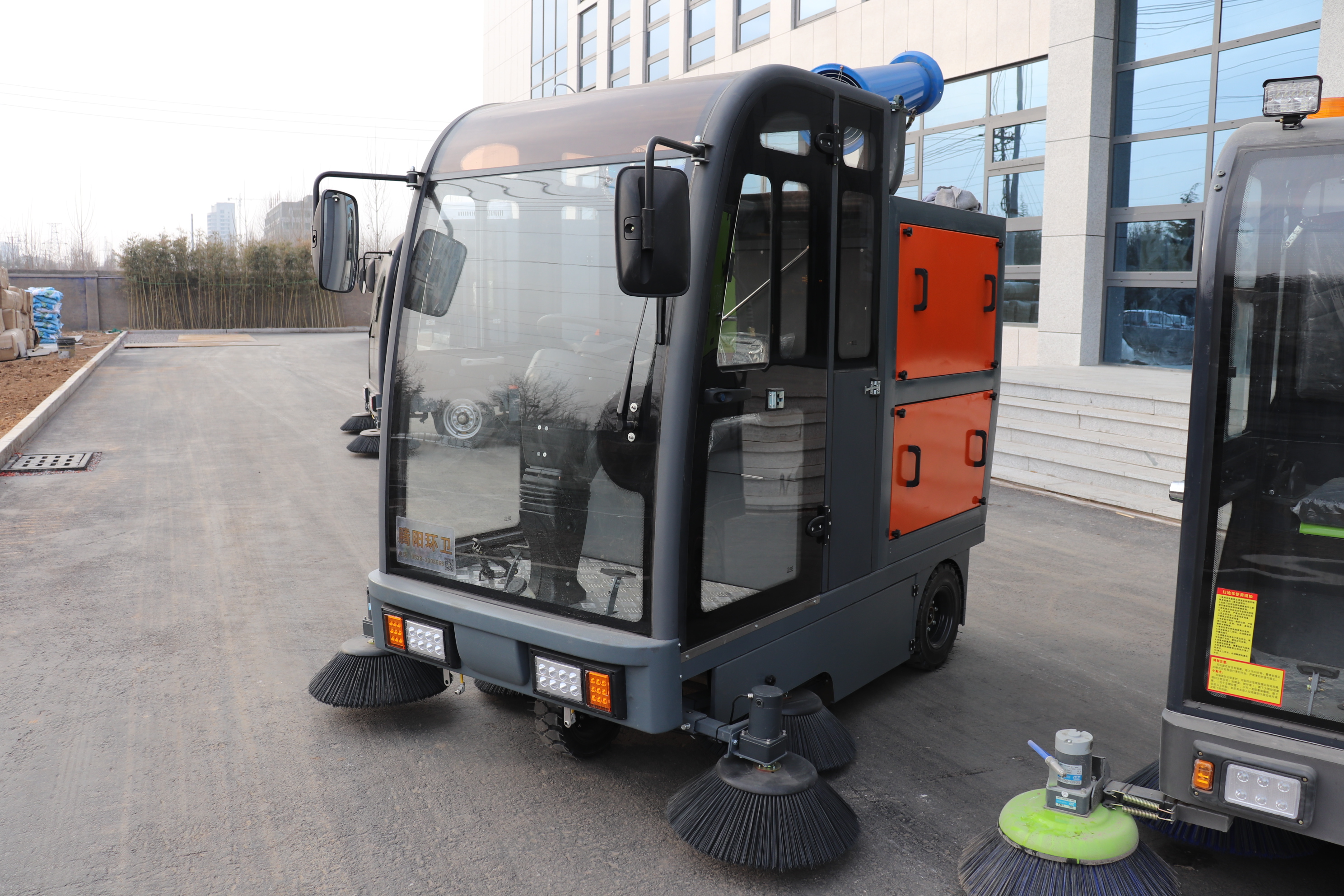 2、扫地车:扫地车分为充电的和燃油的,充电的体积较小,方便灵活,操作简单,容易上手,不需驾照。扫地车不是只适用于清扫路面,它的使用范围多,比如:学校,小区,车库,车间,工厂等都可适用,可以清扫较大的脏东西如:果皮,纸屑,果壳、砂石等,具有吸尘抑尘等功能,可以吸扫尘土,带有喷水口,避免尘土上扬,有的还带有雾炮和高压水枪,可以绿化空气,高压水枪可以冲洗广告牌和堆积在角落的淤泥。