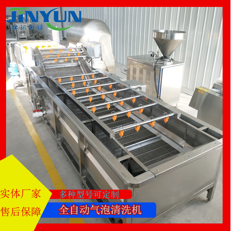 清洗机机架采用优质SUS304不锈钢制作,符合国家食品行业使用标准,采用气泡翻滚、刷洗、喷淋技术,最大限度的对物料进行清洗。