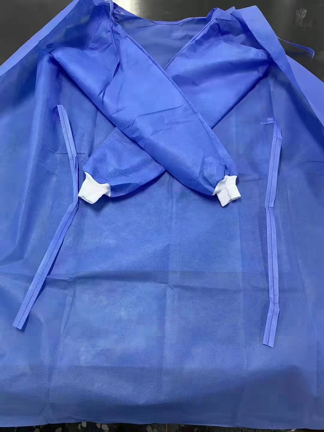 结构及组成:本产品采用防粘和熔喷相结合的复合无纺布(简称SMS无纺布)制成,由前身、后身、袖子、系带组成。