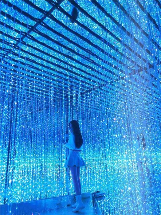 无数盏珠帘灯如脉动般时明时暗 犹如置身在水晶包裹的世界里 满眼都是朦胧而唯美的银色殿堂 小仙女们可以穿越在 “ 珠帘 ” 之中 在这里“ 咔嚓 ” 拍个照 整个人都变得闪闪发亮, blingbling~ 妥妥是票圈的大拇指收割机!
