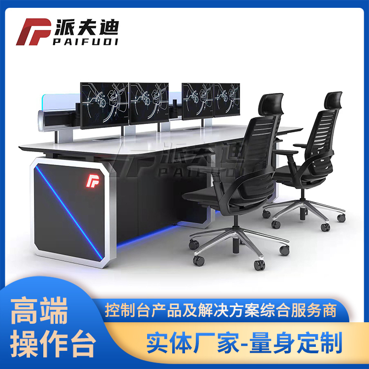 操作台主要用于电视台,轮船,车站,机场,证券等大型机房控制。材质立柱及主框架采用冷轧钢板,厚度为1.5mm-2.0mm,门板及面板采用1.2mm冷轧钢板,保证安装强度。外表喷塑,结构